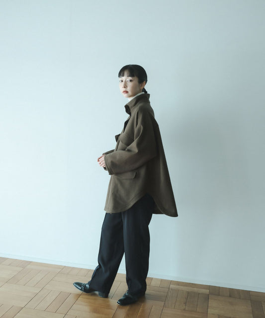 melton stand collar half coat