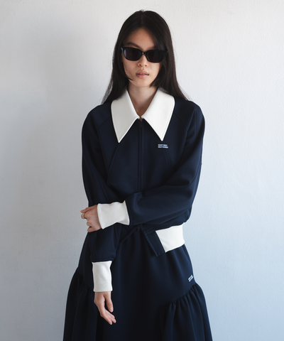 大胆な切り替えとギャザーがジャージらしからぬ可愛さ。