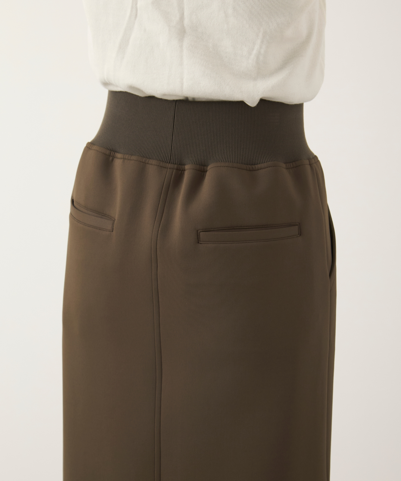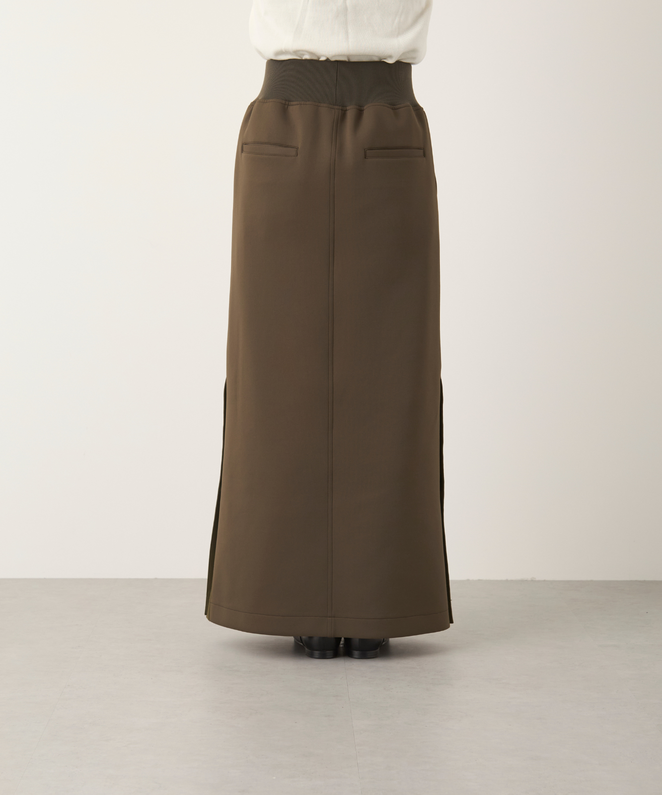 裏地なし / ウエストゴム仕様 / 両脇・両後ろポケット / 裾ベント開き仕様