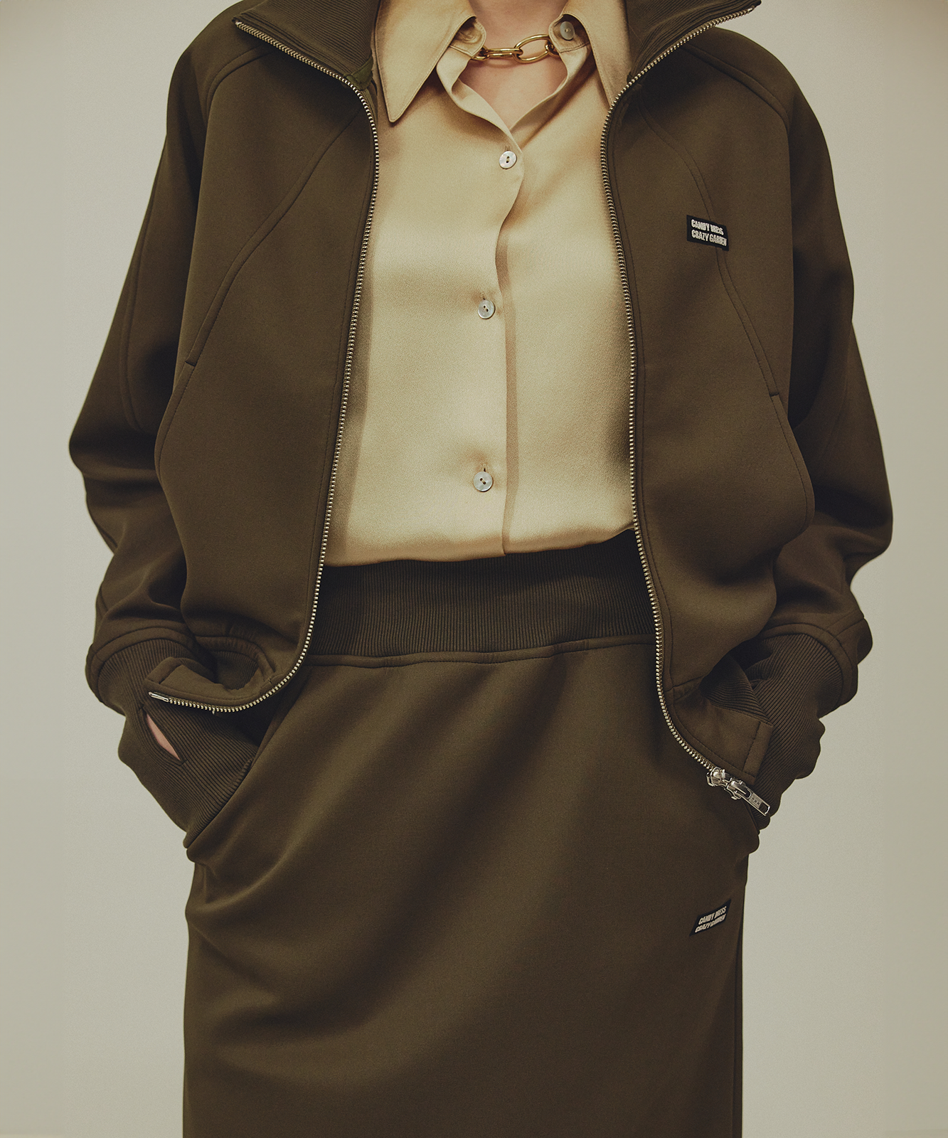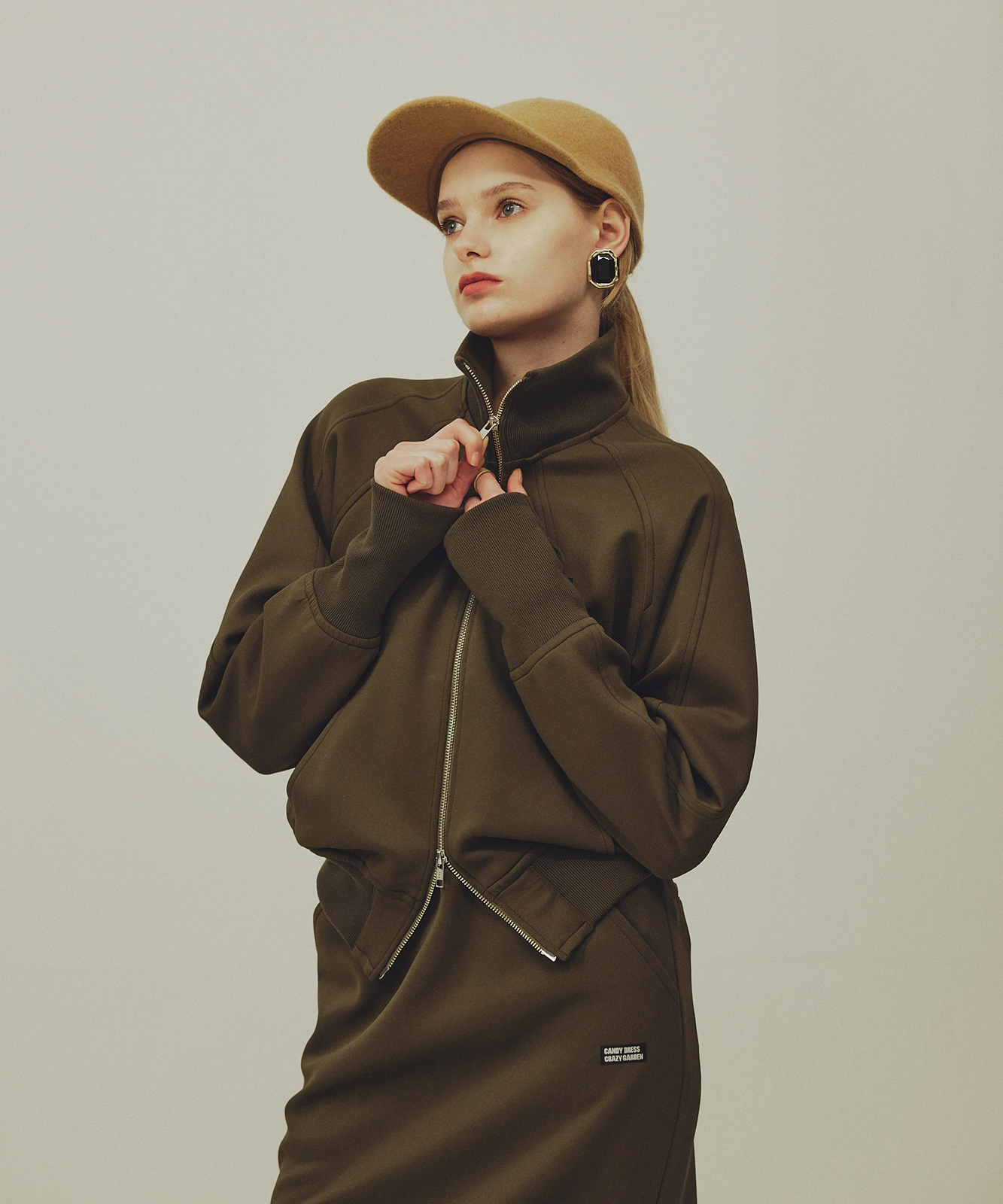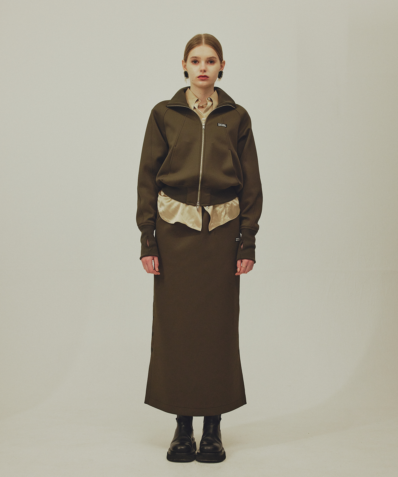 一般的なトラックスカートとは一味違うファッション性、単体でもセットアップでも楽しんでいただけます。
