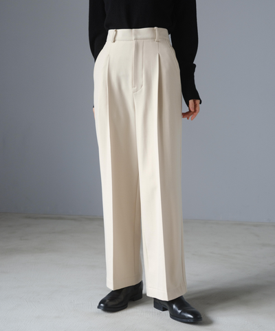 ウールライクストレートスラックスのアイボリーをレイヤードして