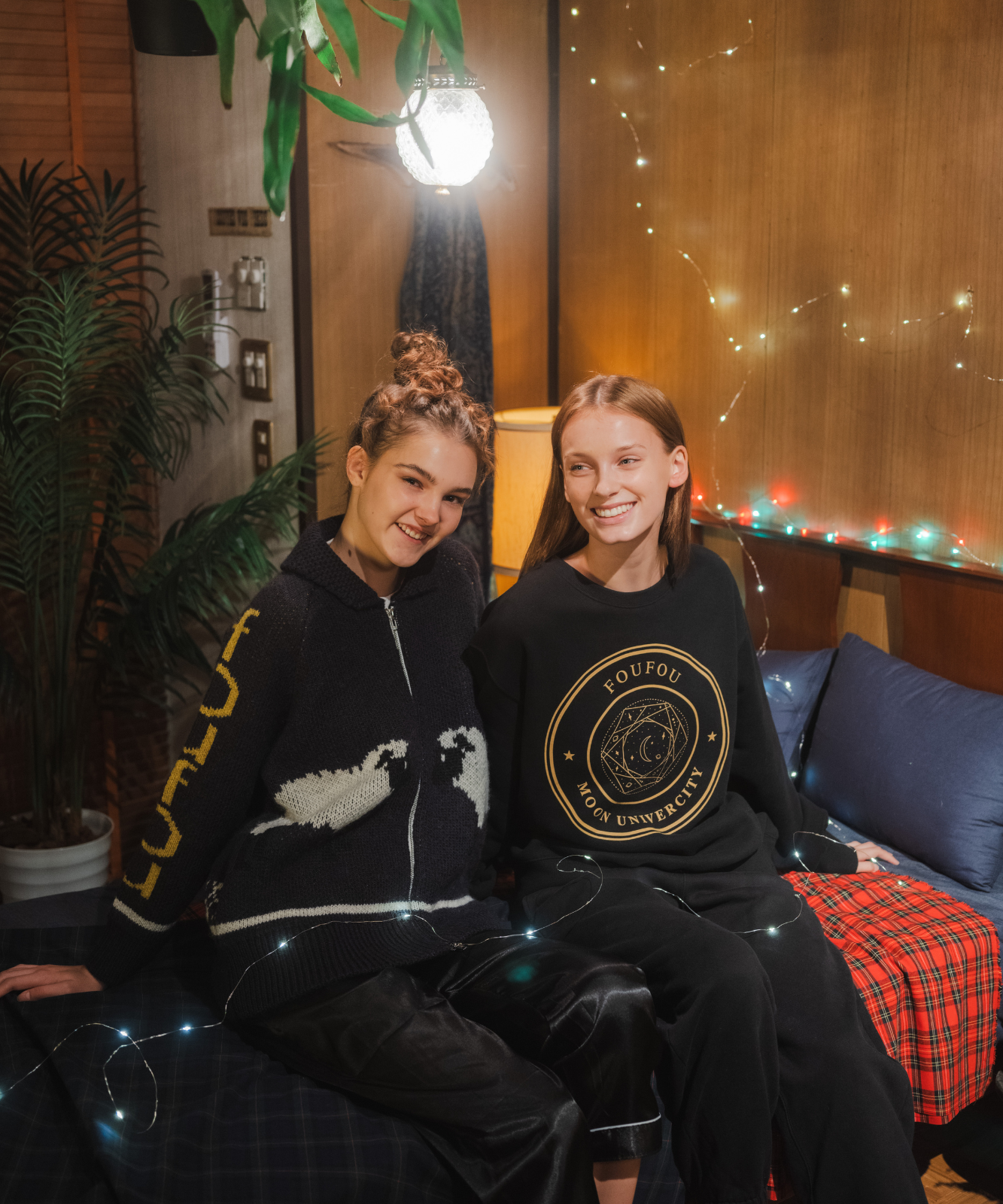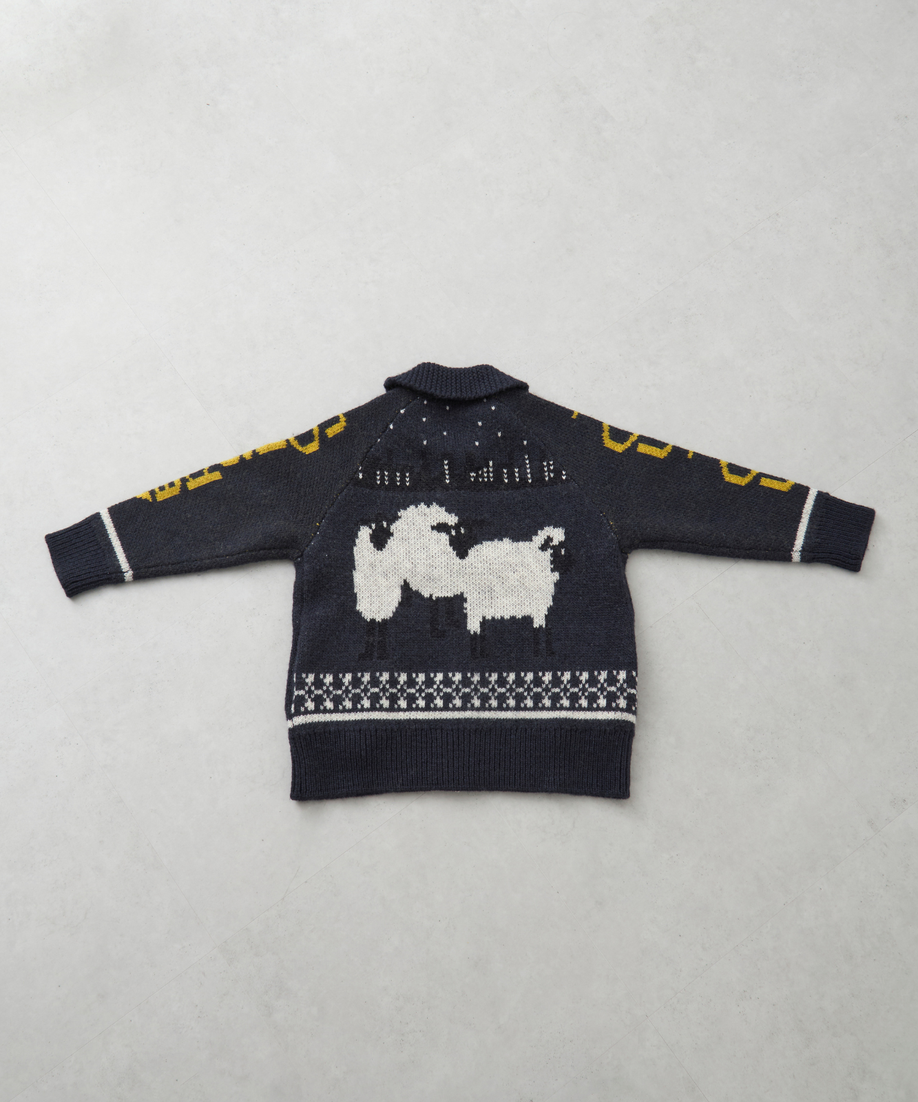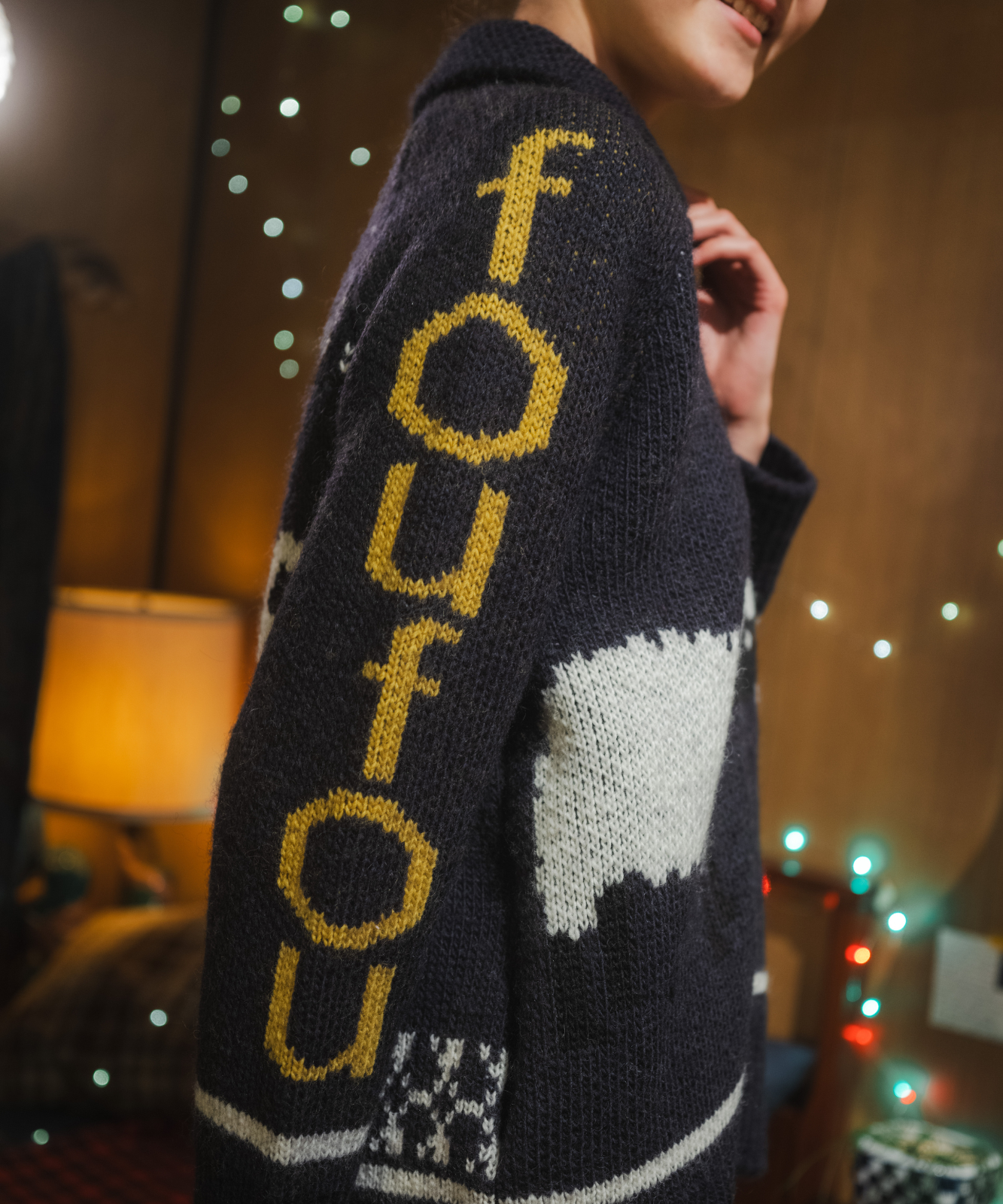 前面には羊が2匹、表現されています。袖には「foufou」「holiday」というご機嫌な文字🎄