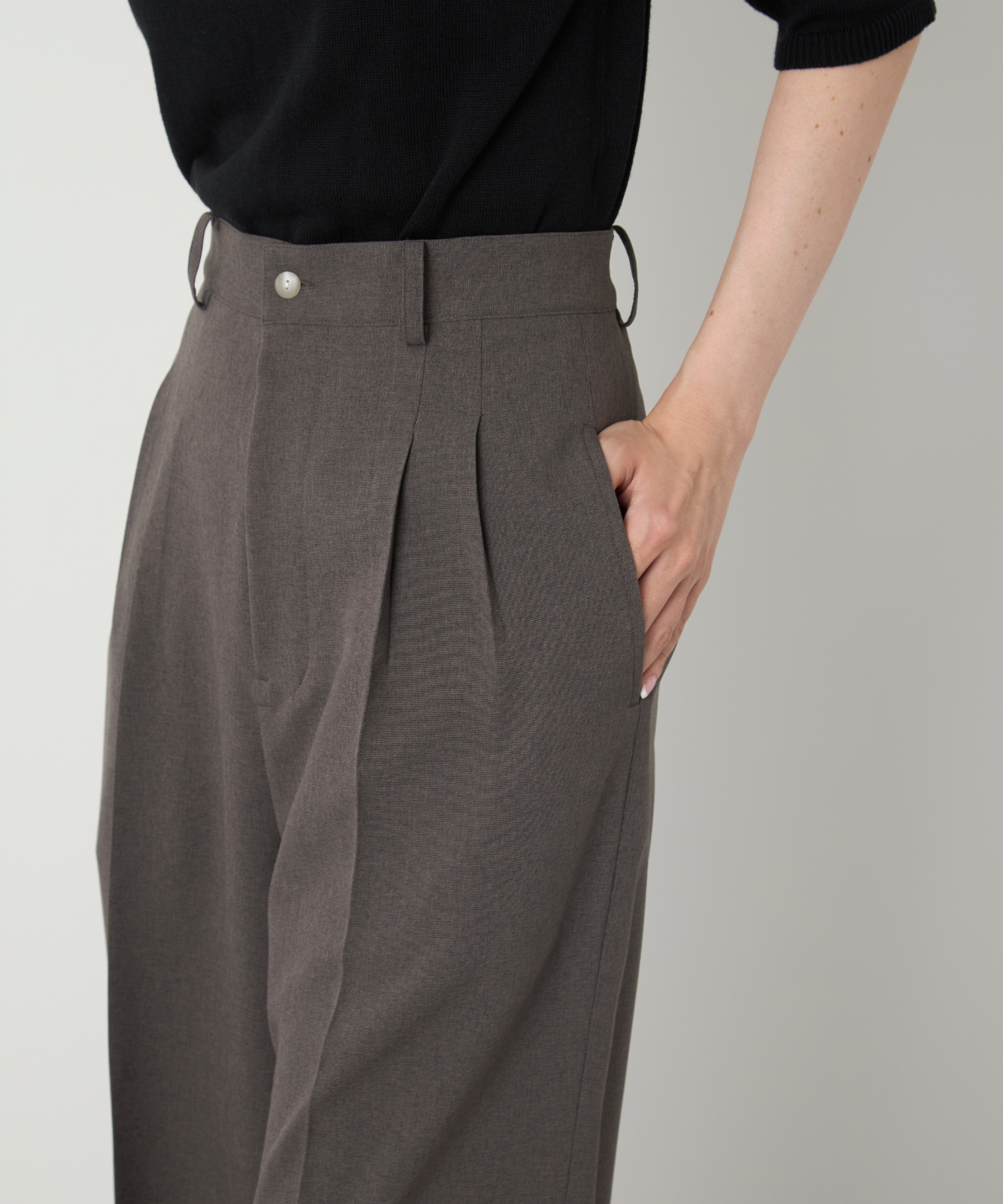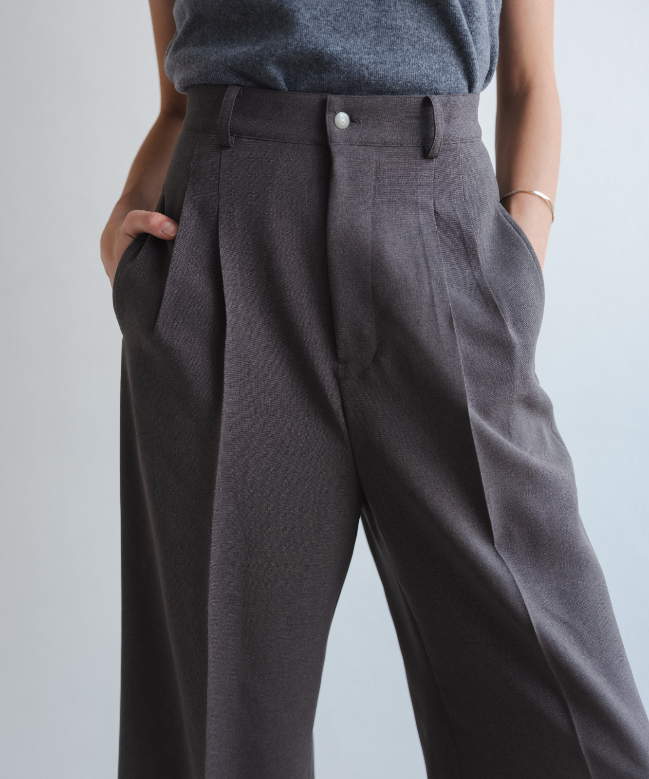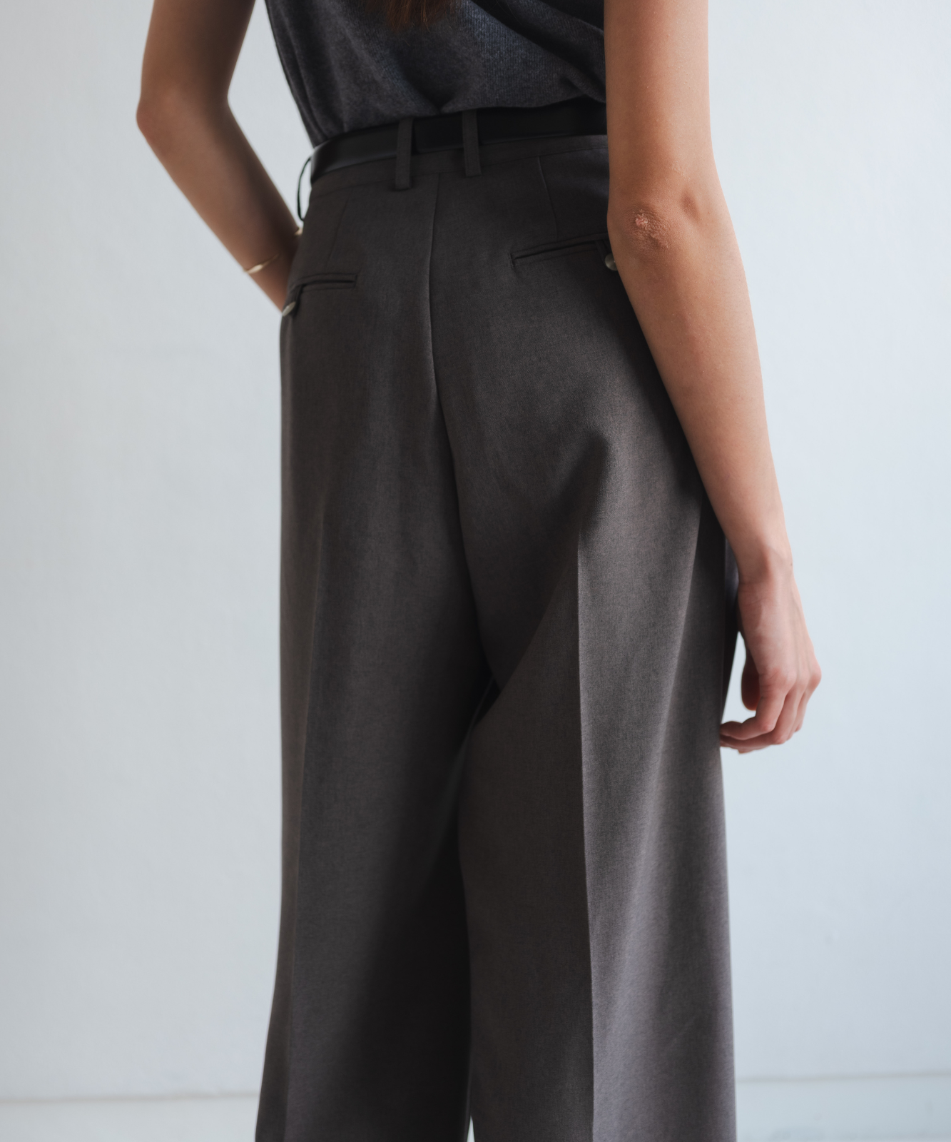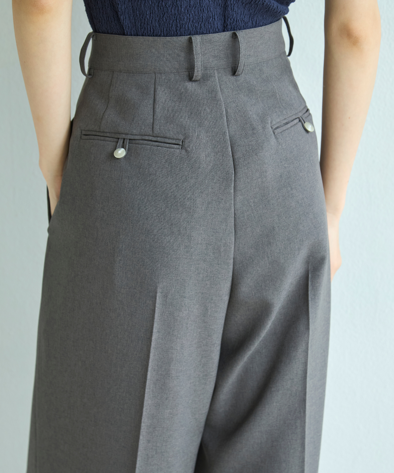 センタークリースの入ったストレートシルエットに、腰まわりはクラシカルなツータック。