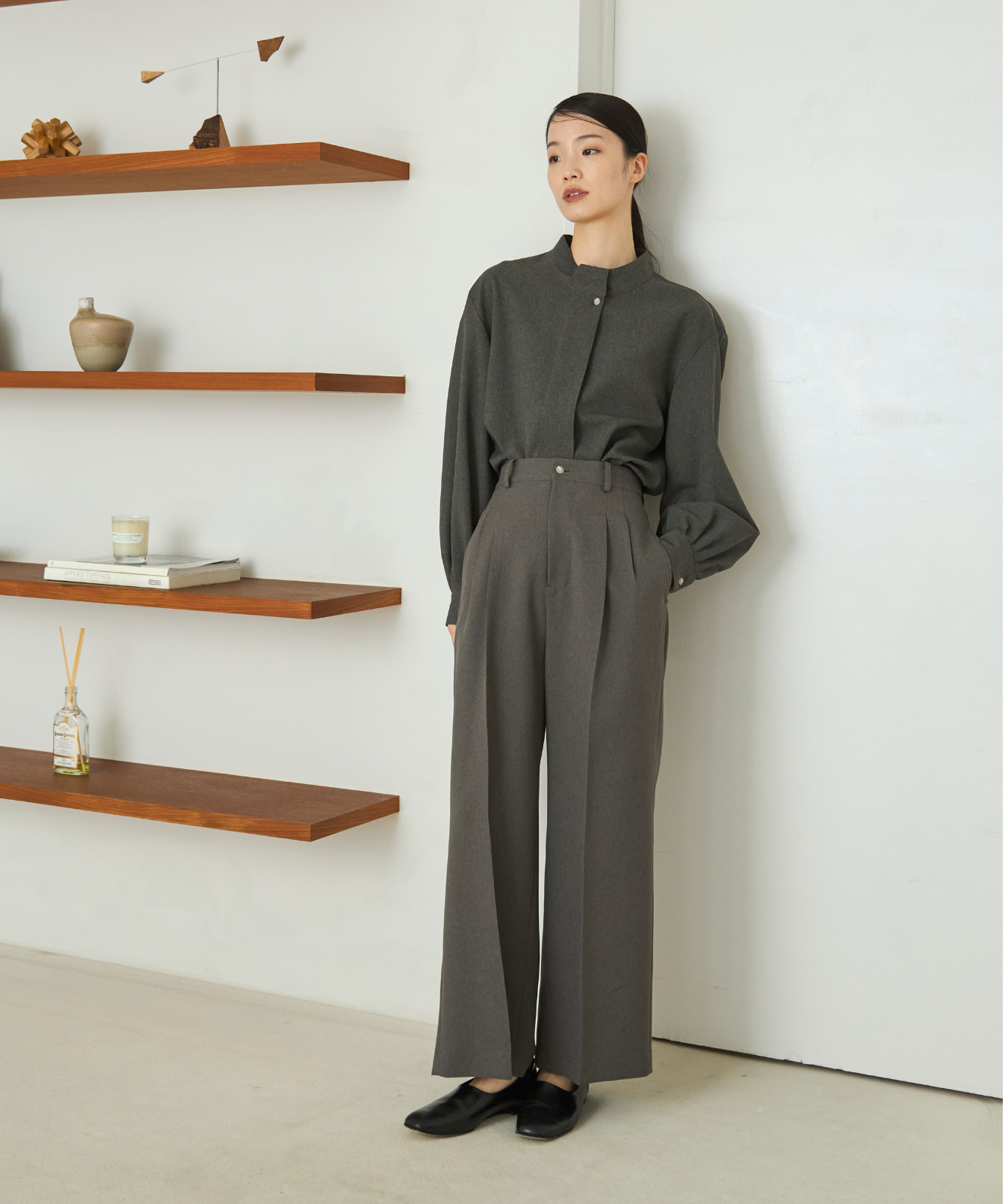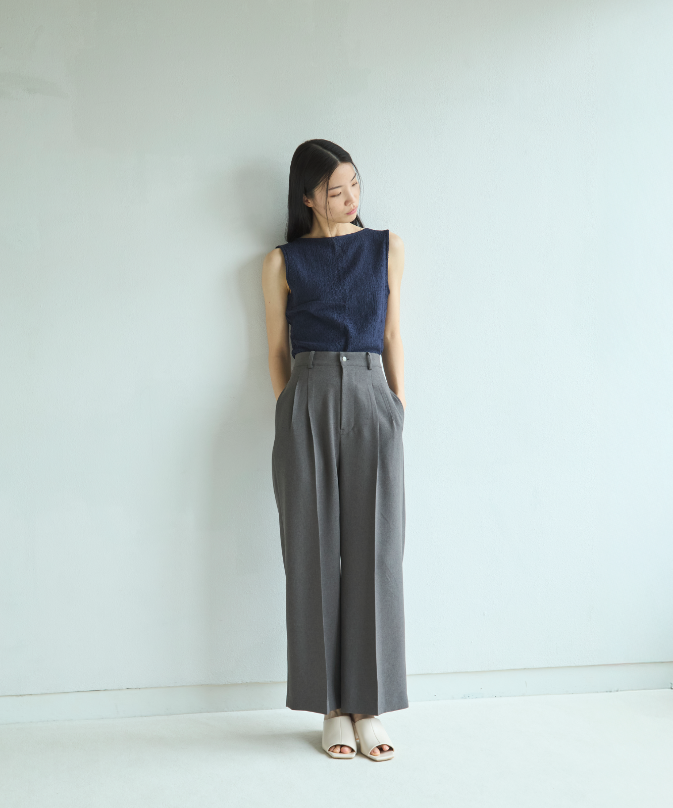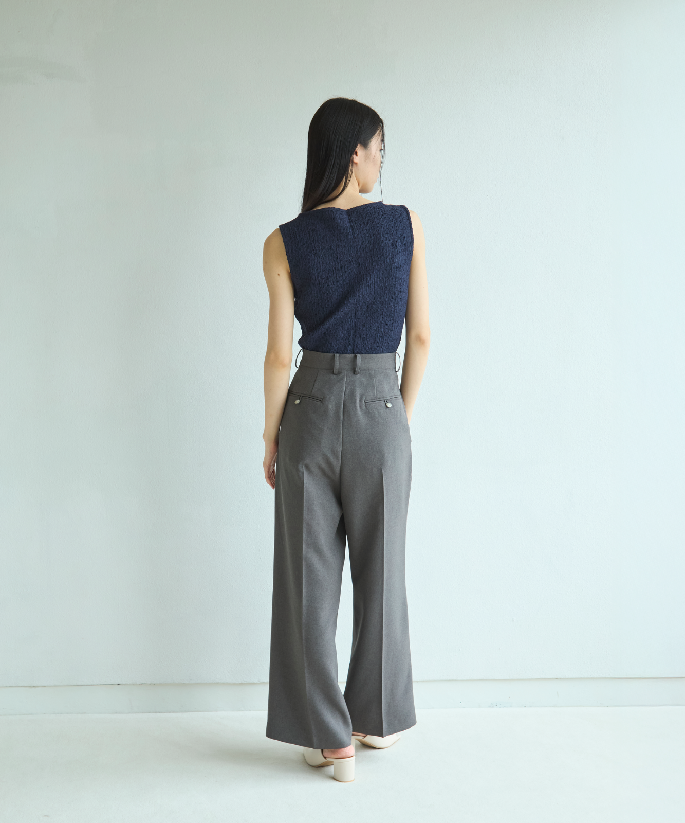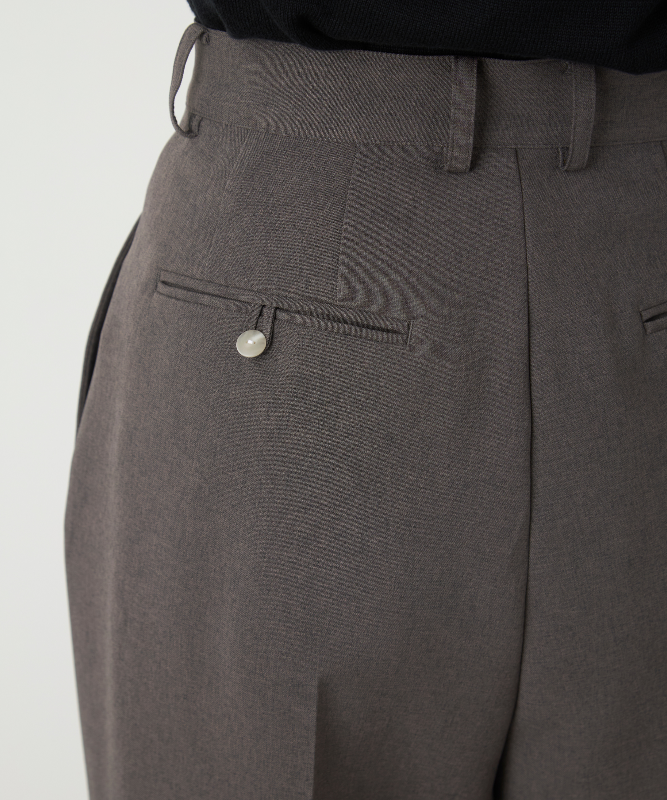 センタークリースの入ったストレートシルエットに、腰まわりはクラシカルなツータック。