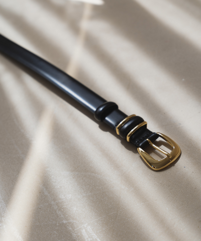シンプルながら、ウエストマークしたベルトでメリハリをプラスして