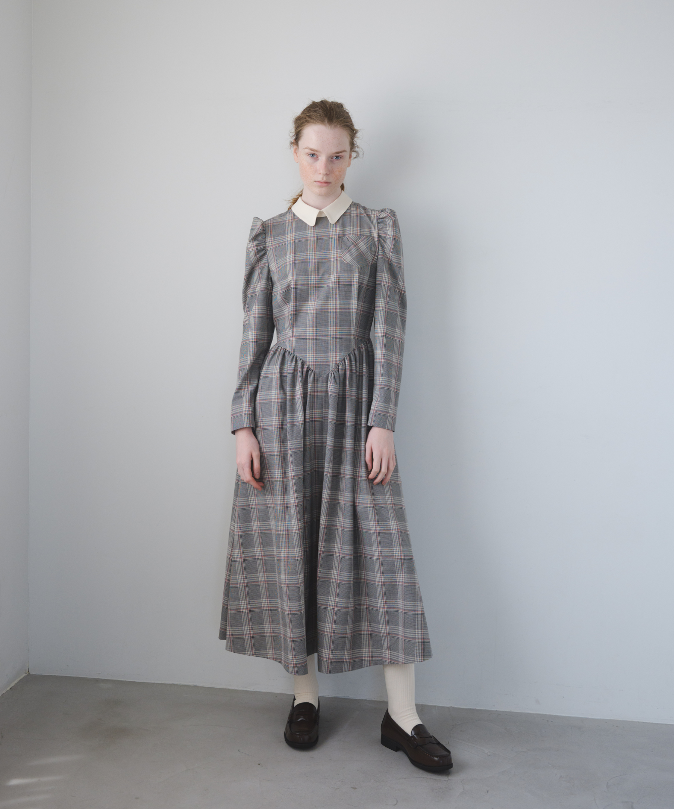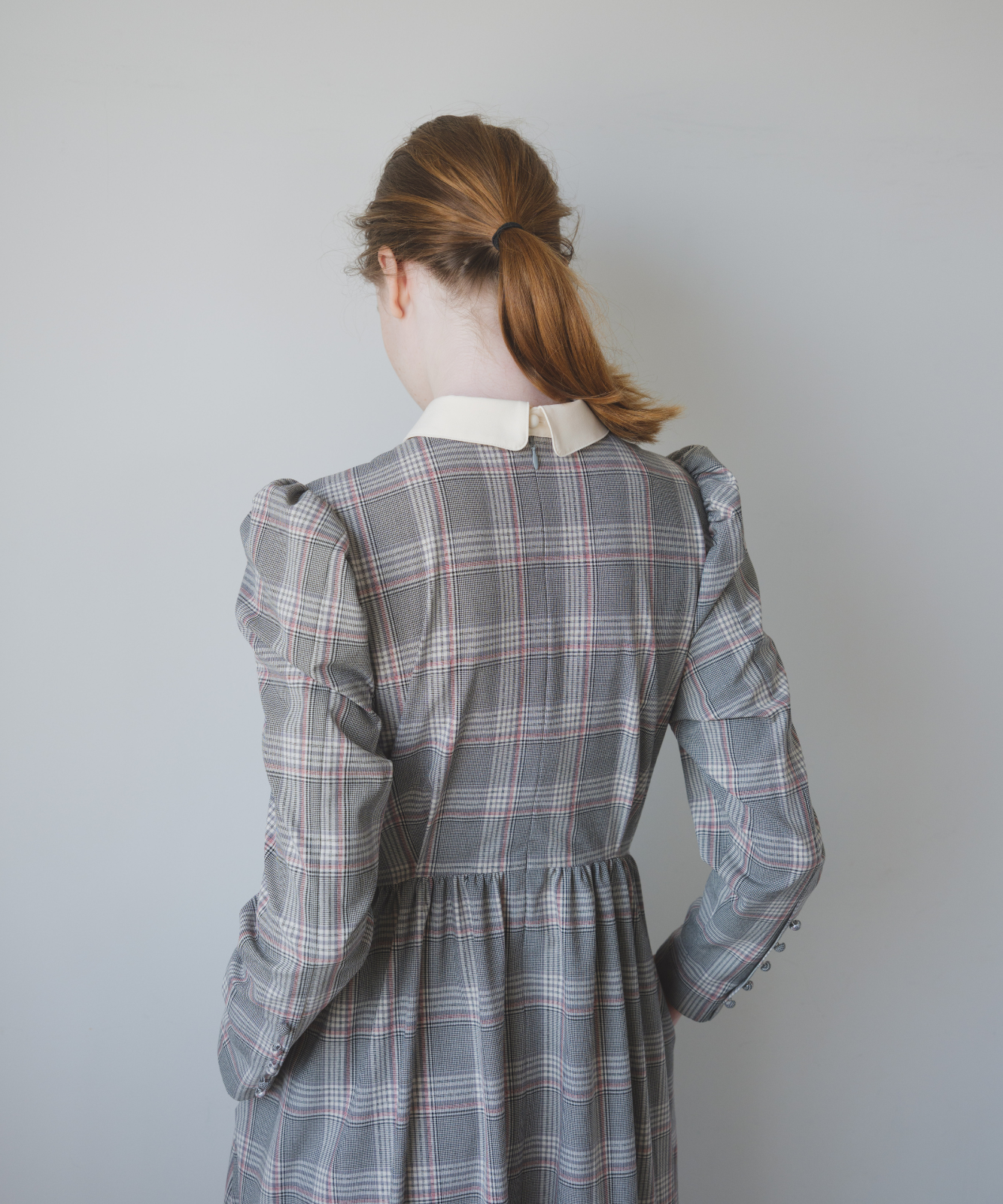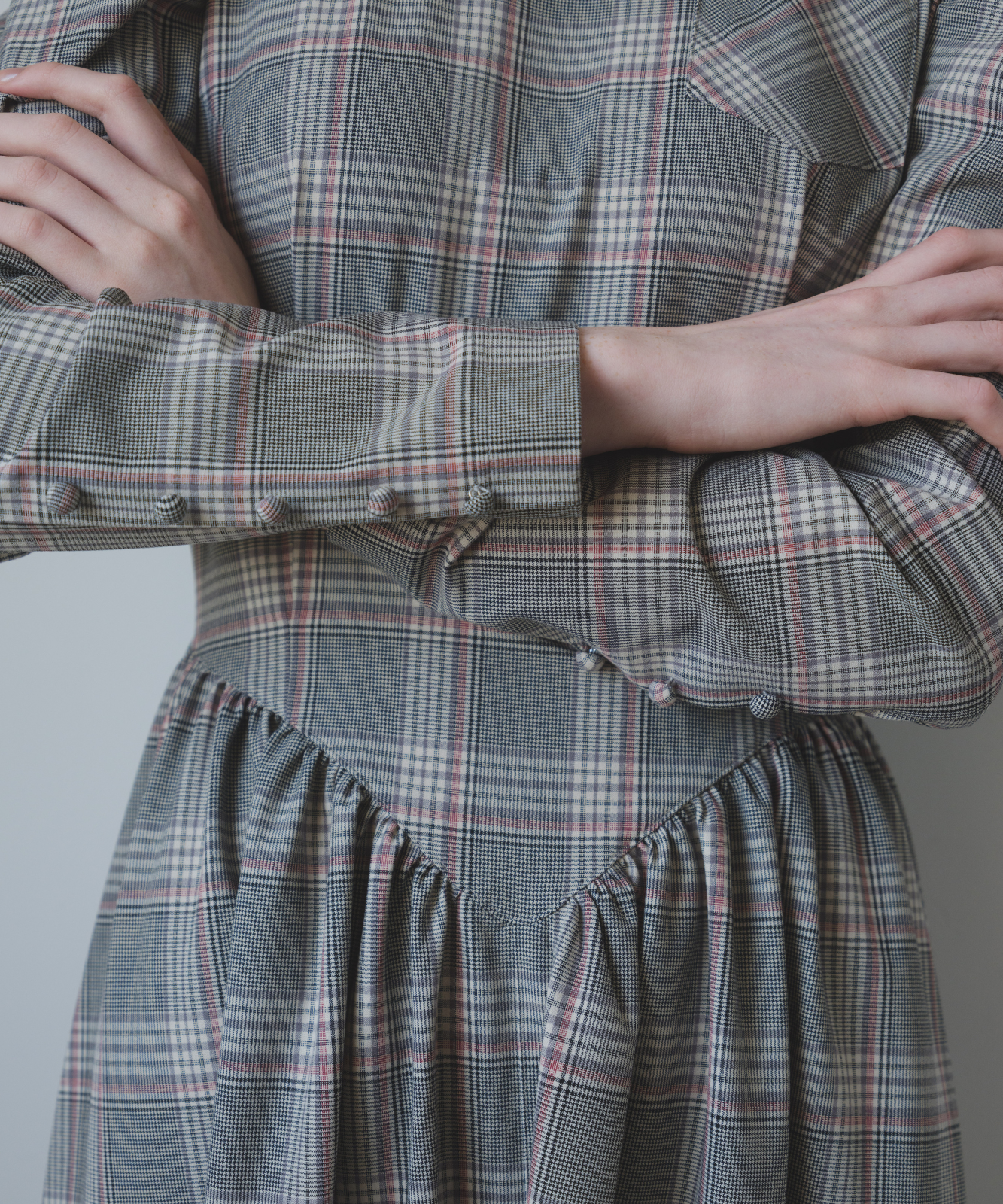 クラシカルな格子柄に、ギャザーのやわらかな広がり。