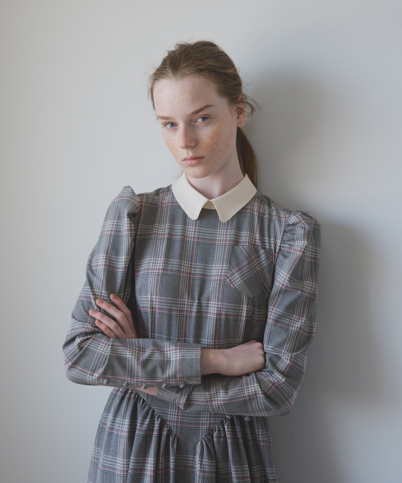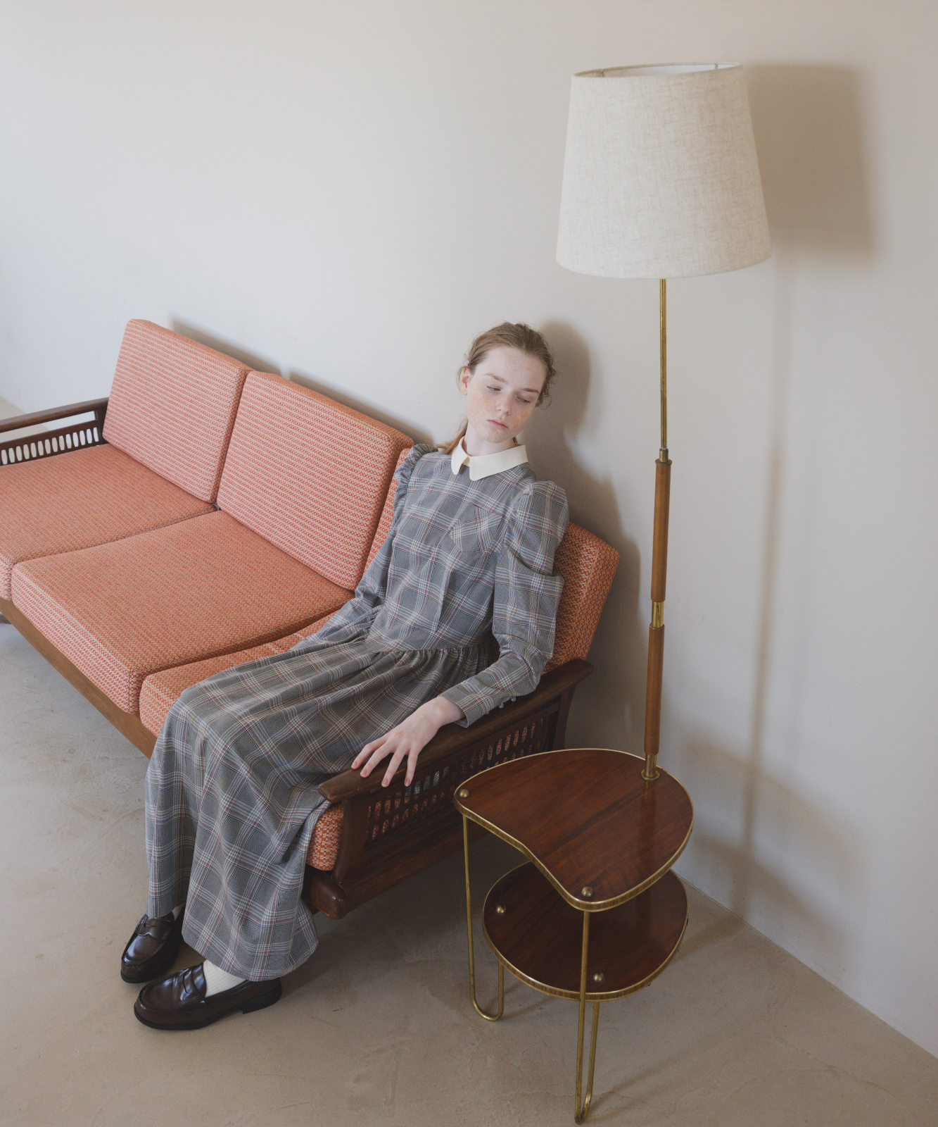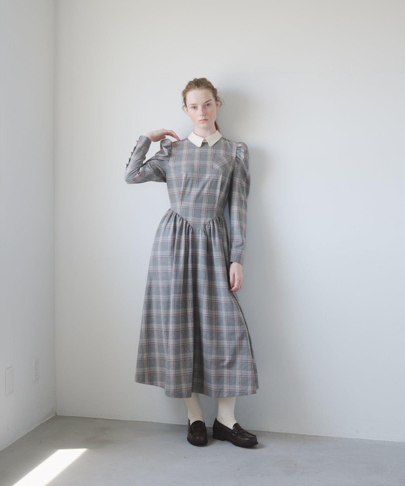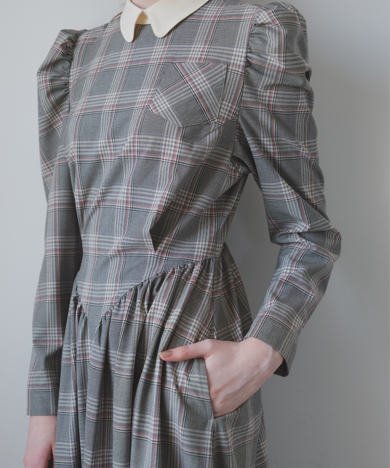 クラシカルな格子柄に、ギャザーのやわらかな広がり。