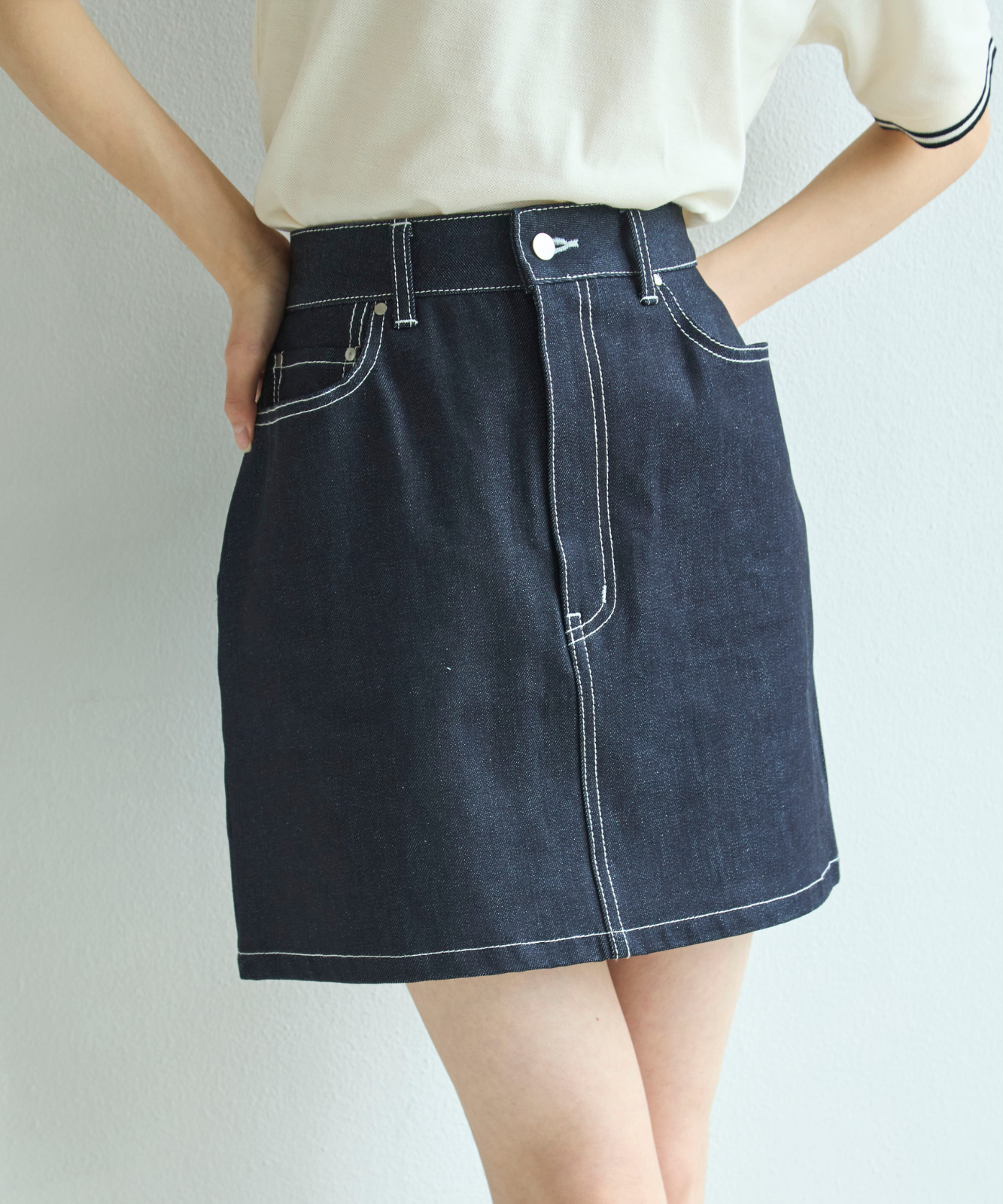 ダークトーン+ハリ感のあるデニムスカートと合わせることで、
