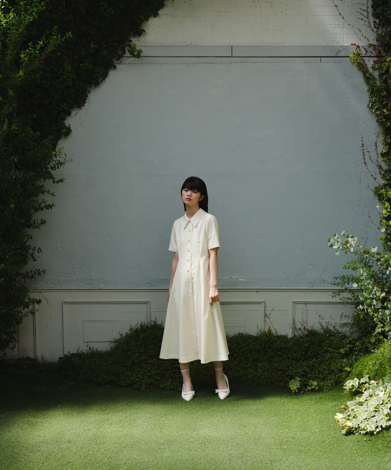 やわらかなアイボリーのワンピースを主役に